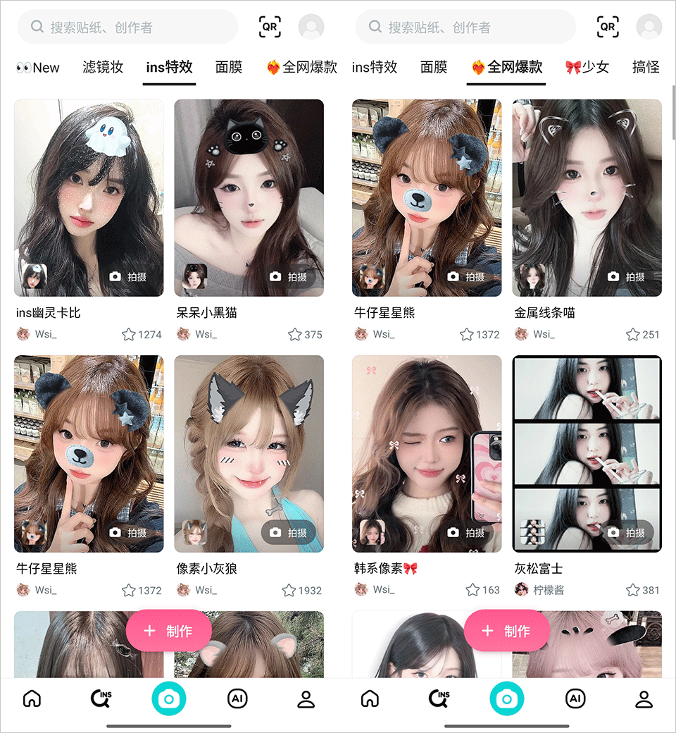 眨眼、张嘴解锁卖萌贴纸、Bling Bling星光滤镜加持你的仙气值!