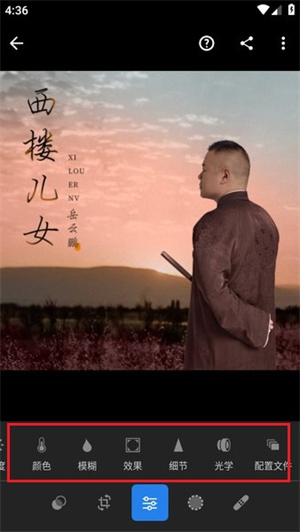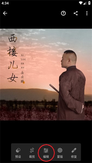 1、打开软件后,选择要调色的照片,底部选择“编辑功能”。
