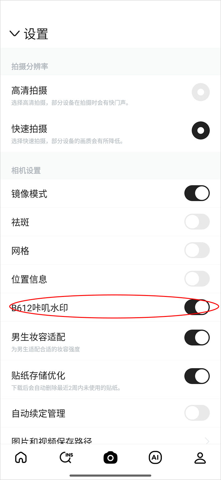 5、接着拍照就不会带B612咔叽相机app的水印啦
