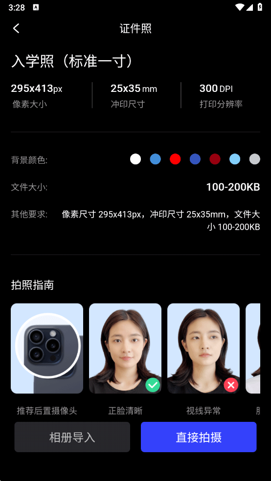 2、击进入证件照页面,按照要求选择自己对应的选项