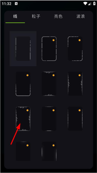 3、用户可将边缘灯设置为线、粒子、亮色、波浪等显示样式;