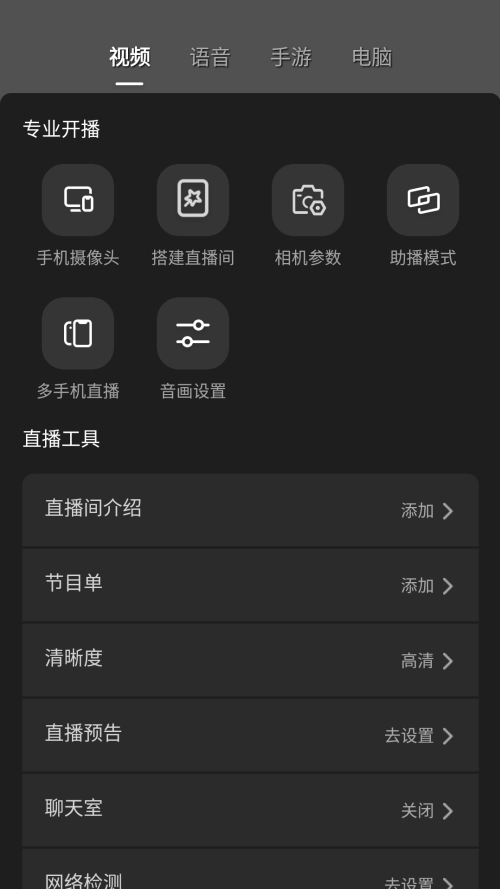 4、然后在设置栏目中,可以提前做好节目单、清晰度、公屏等直播间的相关设置。