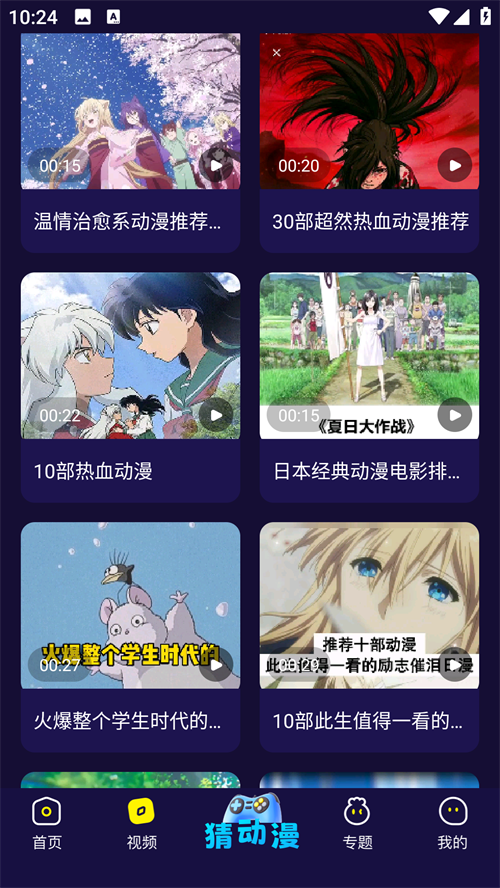 3、我们可以通过点击“视频”来选择不同类型的动漫进行观看。