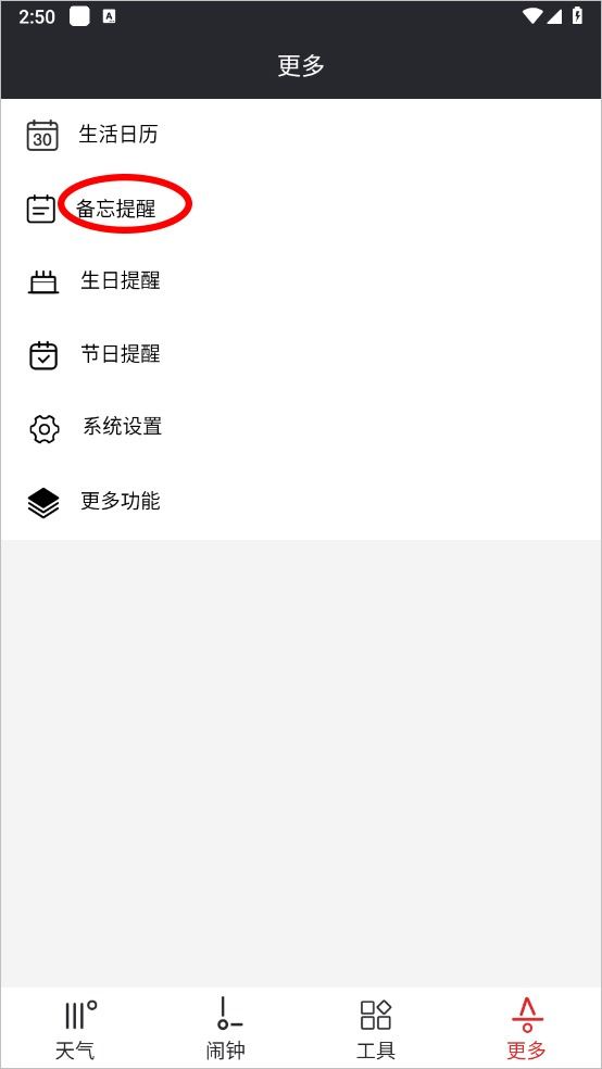 1、打开软件进入首页可以查看每天的天,点击下方更多栏目