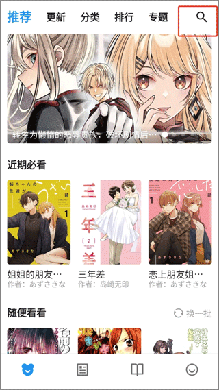 1、在本站下载后,打开软件后点击搜索你想看到漫画