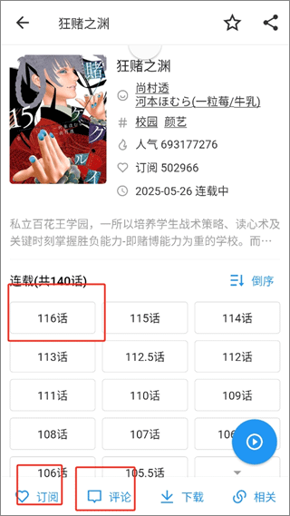 3、找到了之后,点击章节也可以点击订阅或者发送评论和其他人一起探讨