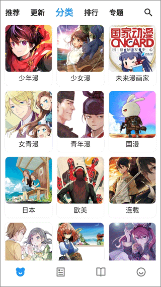 2、或者点击分类这里有各种类型的漫画