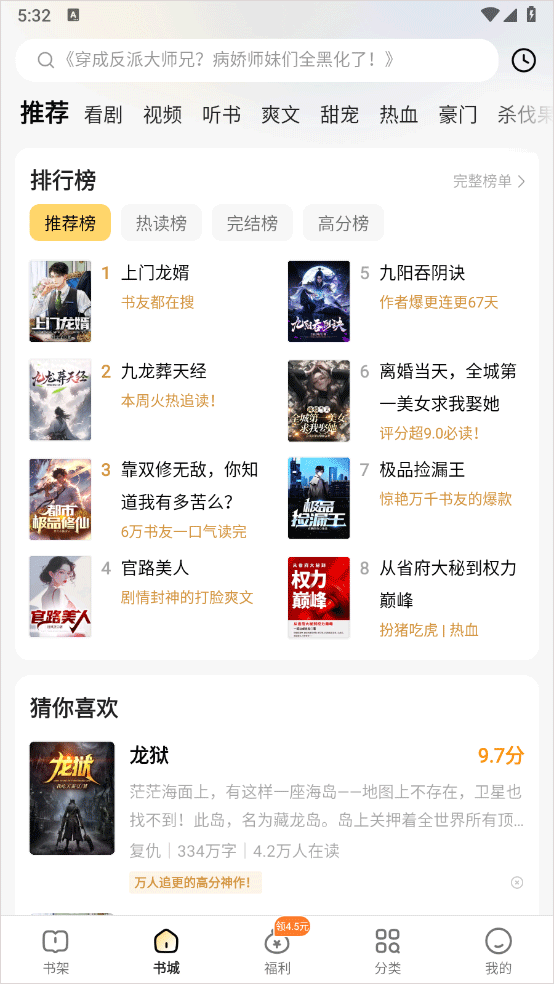 1、推荐排行小说,当自己不知道看什么小说的时候可以从排行榜之中进行选择;