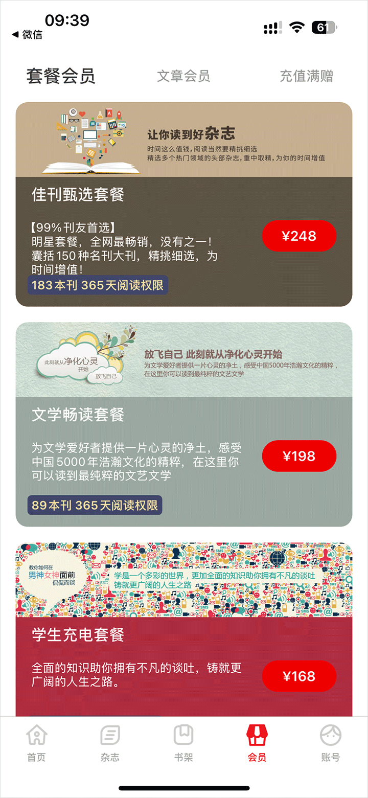 - 人性化的套餐定制服务,根据个人阅读需求自选套餐