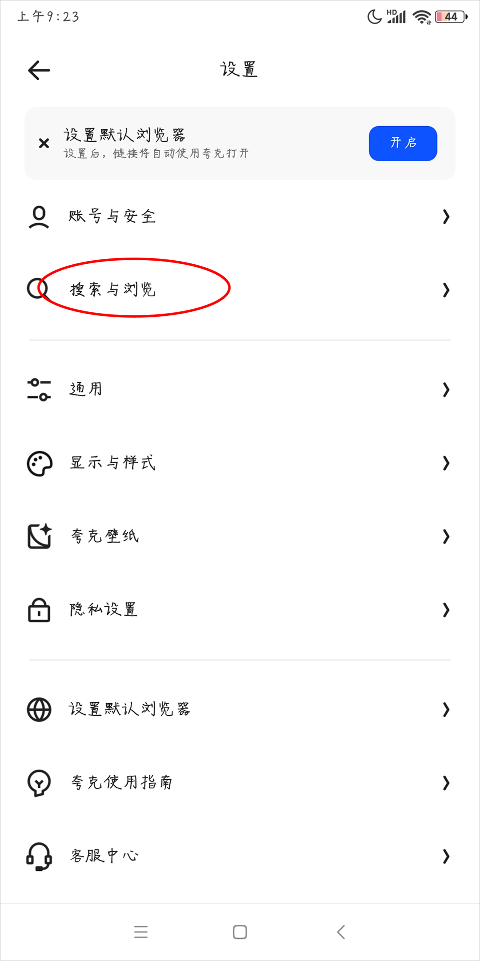 3、进入设置之后,找到搜索与浏览选项并打开。