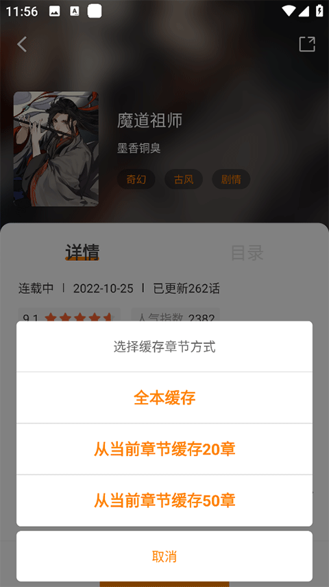 2、选择想要缓存的章节数,等待缓存完成就可以离线观看了