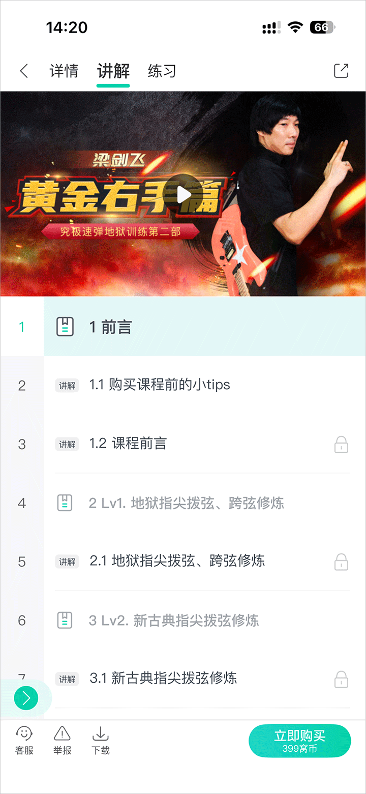 3、高质量的课程内容:高清示范/讲解/跟练视频、伴奏、乐谱