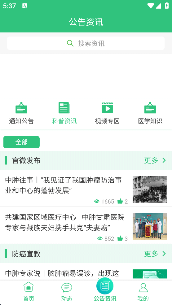 医院官方的休息通知,防止生病的各种文章,视频,帮助大家科普医学知识。