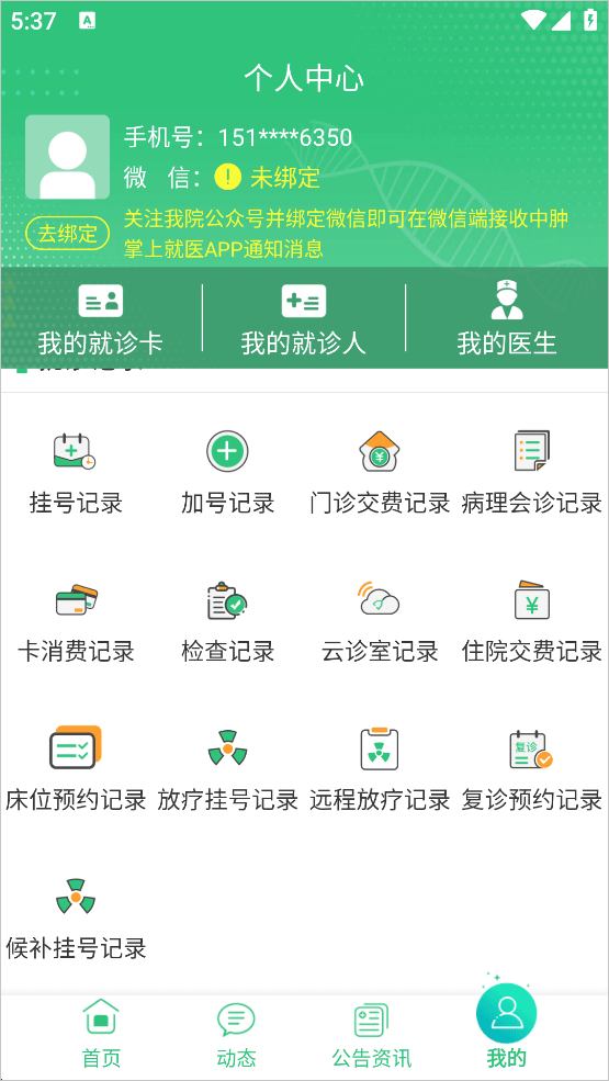 可以查看所有的就诊记录,医生信息以及个人信息。
