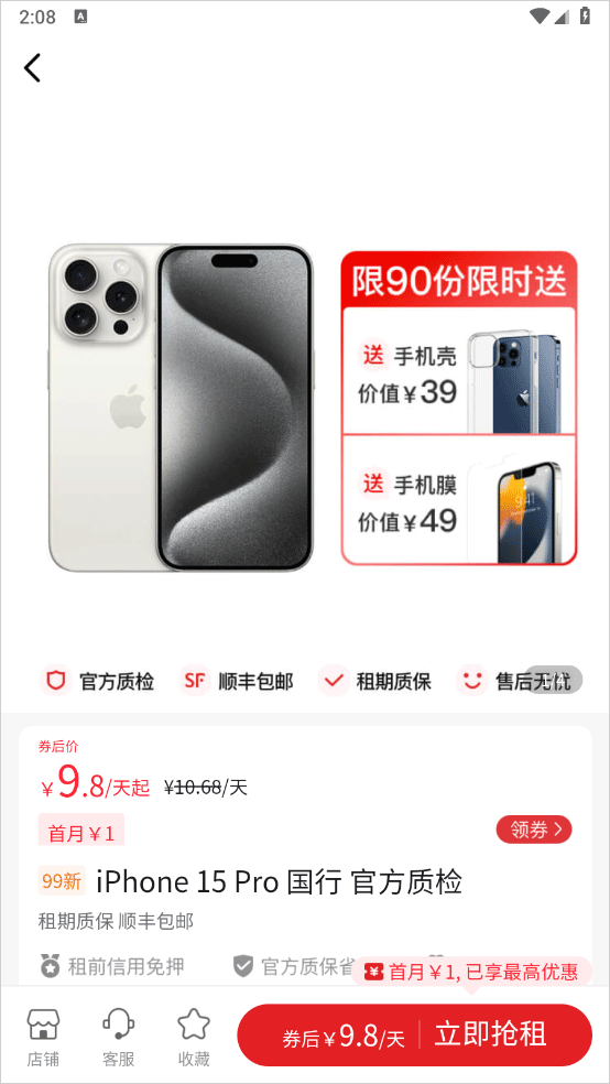 以租代购资金压力小:仅需15.77元/天,轻松无压力,只为使用付费,年年换新机