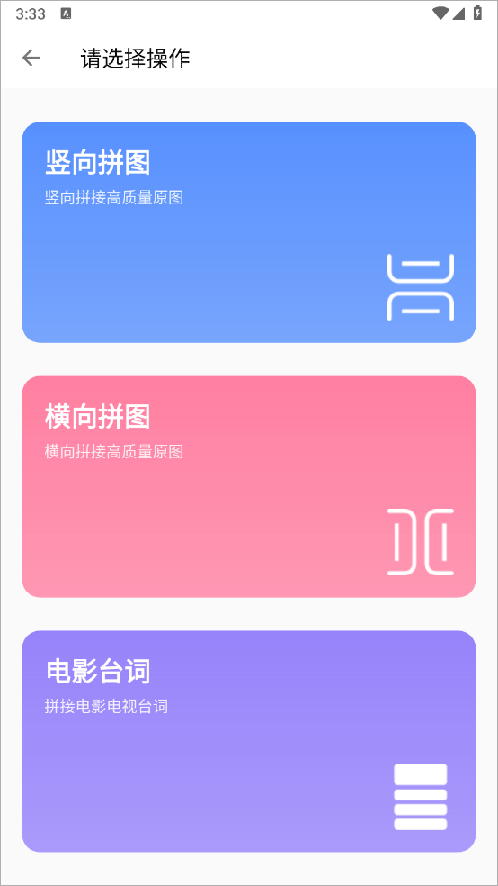 1、打开软件进入首页选择你要拼接的类型,小编以长图拼接为例