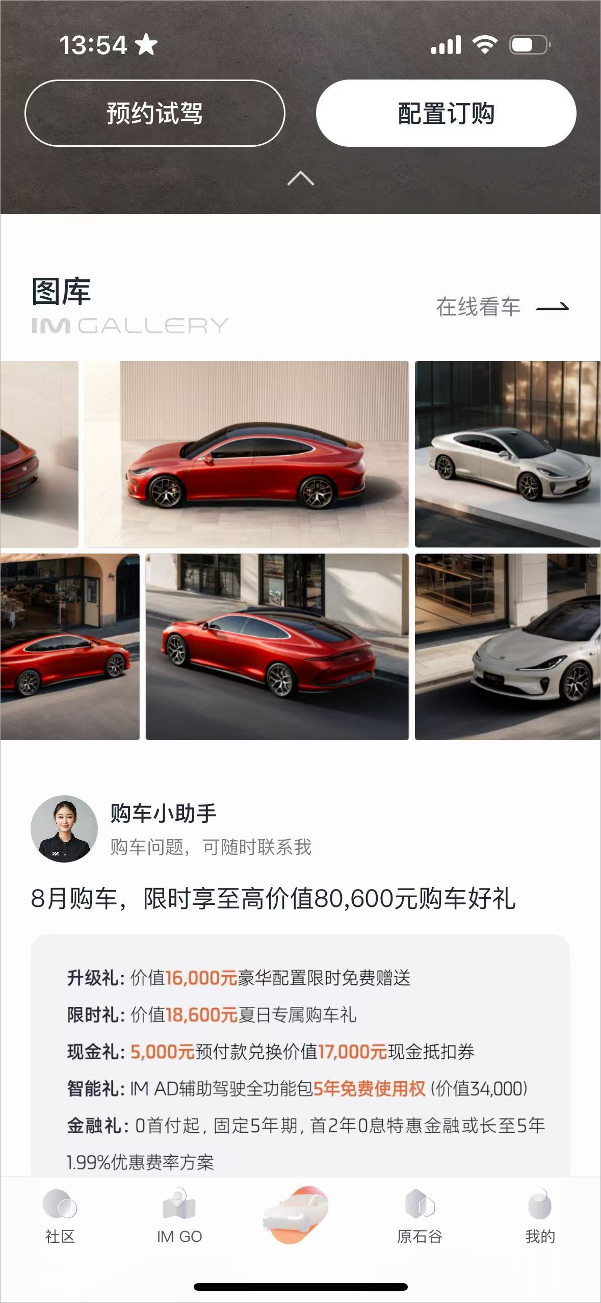 IM智己汽车app是一款智能汽车服务的手机软件,提供在线订车、远程操作连接,配件商城以及客服服务等功能,用户可以通过手机实现对车辆的远程控制和管理。支持查看车型、配置及价格信息,方便用户选购智己汽车产品,并且提供最新的汽车行业资讯,帮助用户了解各种信息热点。除看车以外,app内还有社区服务,用户可以加入车友社群,分享用车体验,探讨科技、艺术、音乐、时尚、生活方式等不同领域的话题。