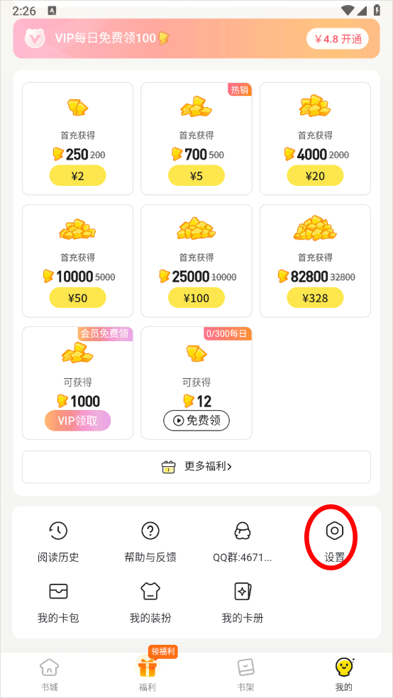 2、下滑点击设置图标