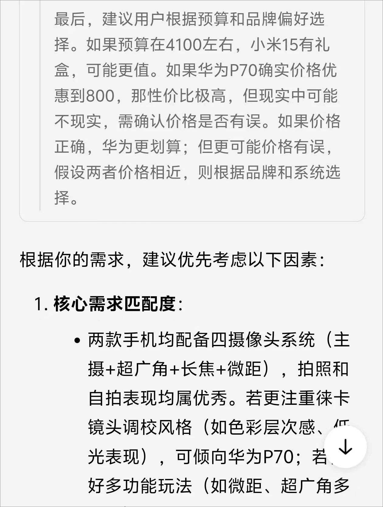 购物决策:上传商品图并提问仅用21秒,文小言就思考完了,还对比了手机和价格参数,给出了答案。