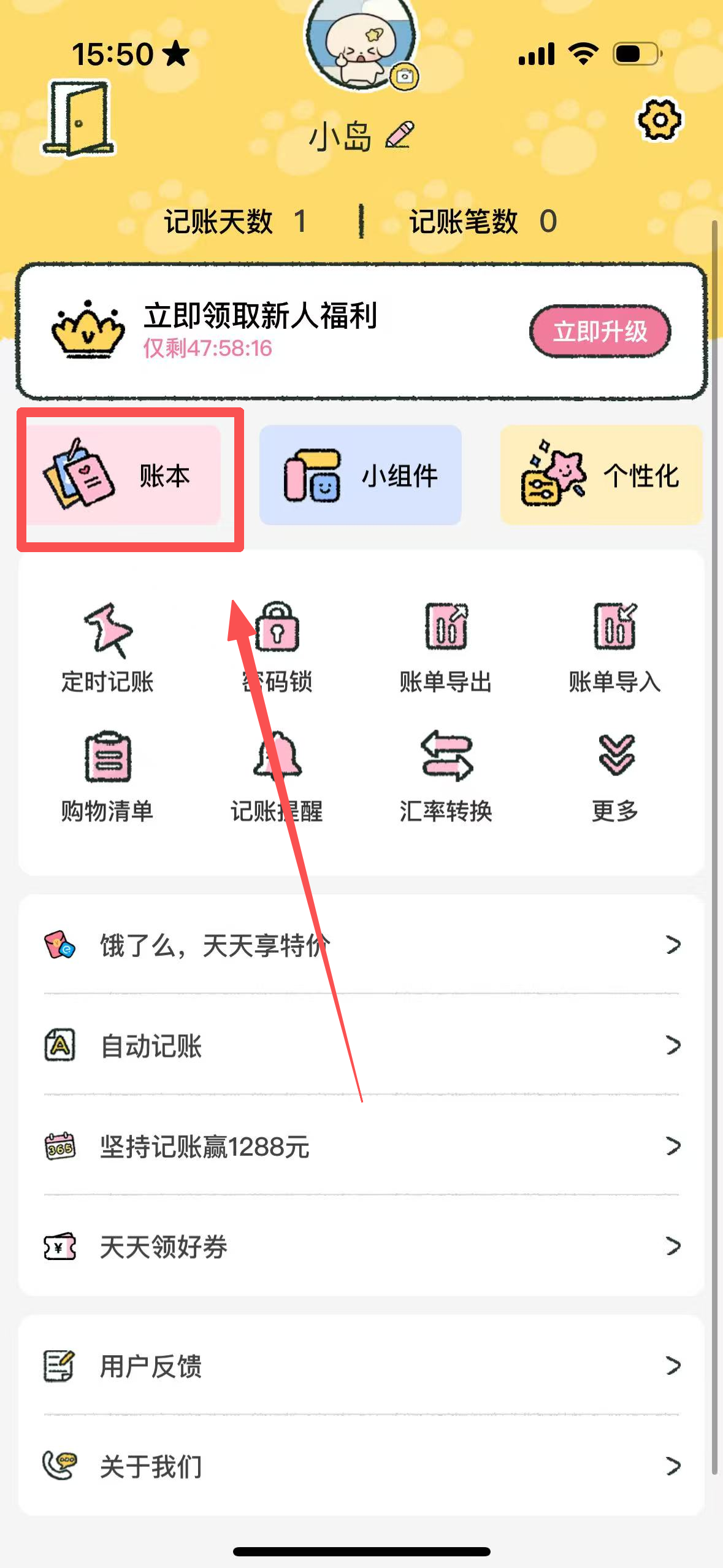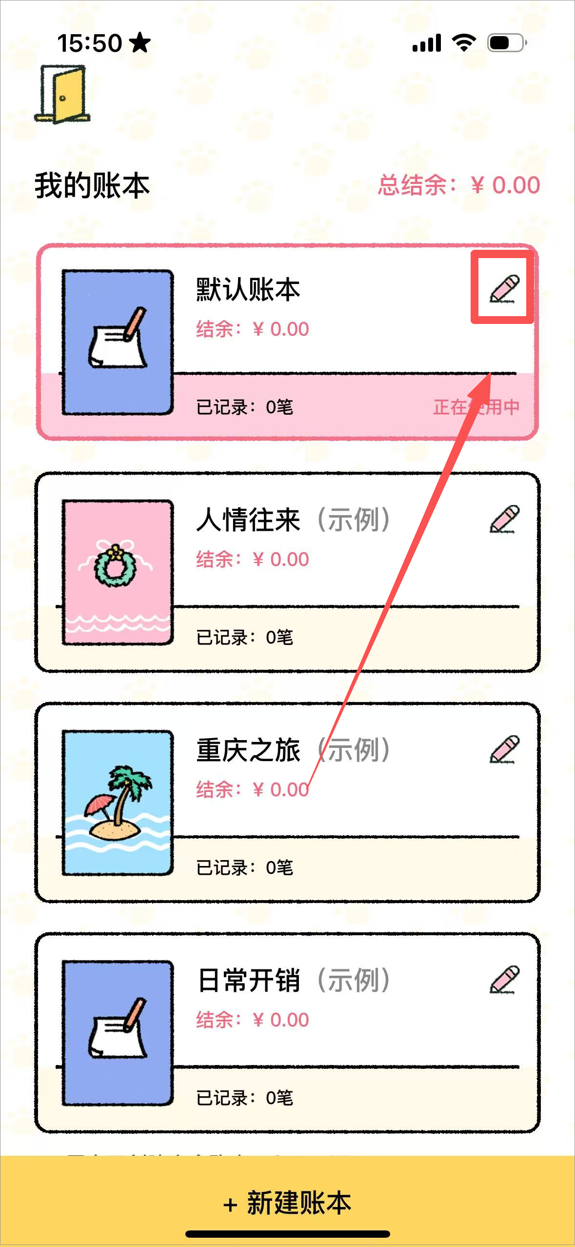 3、进入账本页面,找到想要删除的账本点击对应账号右上角的标志