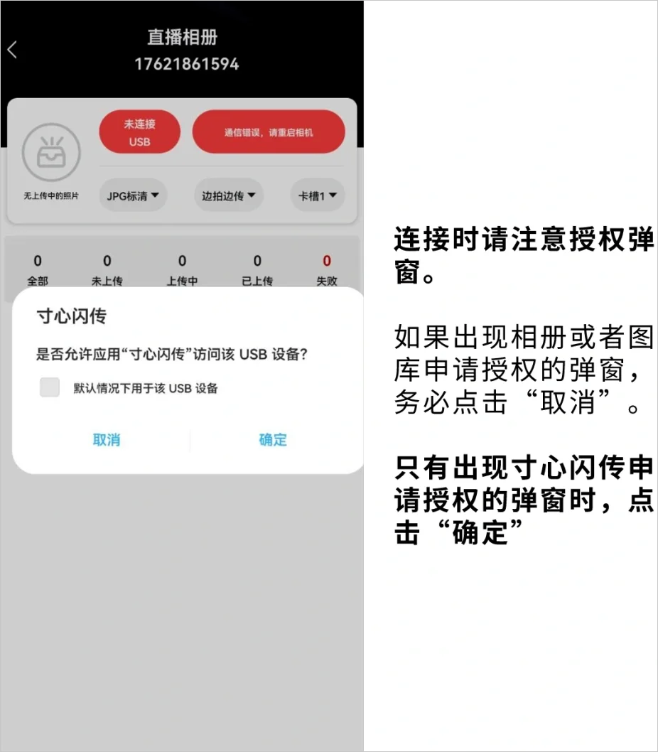 3、【秒拍秒传】寸心闪传旨在便捷连接手机和相机,通过OTG数据线和FTP连接安卓手机,确保您能够轻松上传和传输照片。