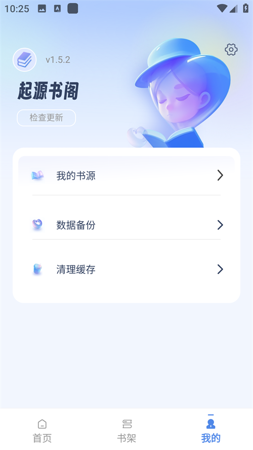 1、首先在开心电玩下载并安装起源书阁app,安装完成后打开app进入主界面。