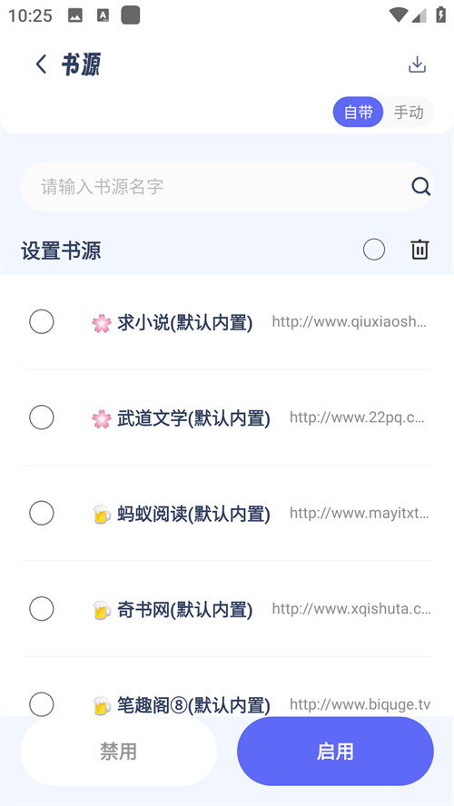 3、进入到“我的书源”,可以查看到多种不同类型的书源地址,你可以随意选择。