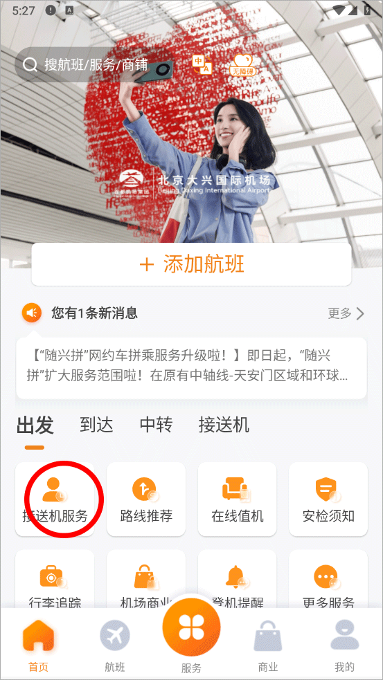 1、升级页面设计与交互体验:更新主视觉设计,与大兴机场线下风格保持一致;更新主页页面设计,按出行场景划分功能区域,整合商业与服务信息。