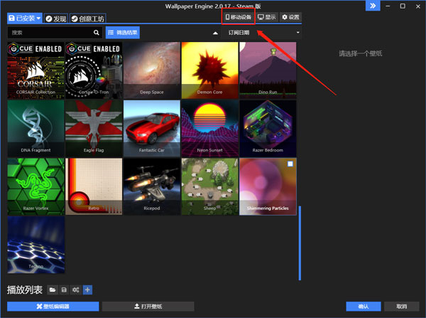 1.在 Windows 上的 Wallpaper Engine 中单击新的移动设备按钮,然后选择连接新设备。