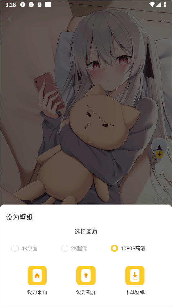 3、可以选择设为桌面还是锁屏的壁纸还有清晰度选择