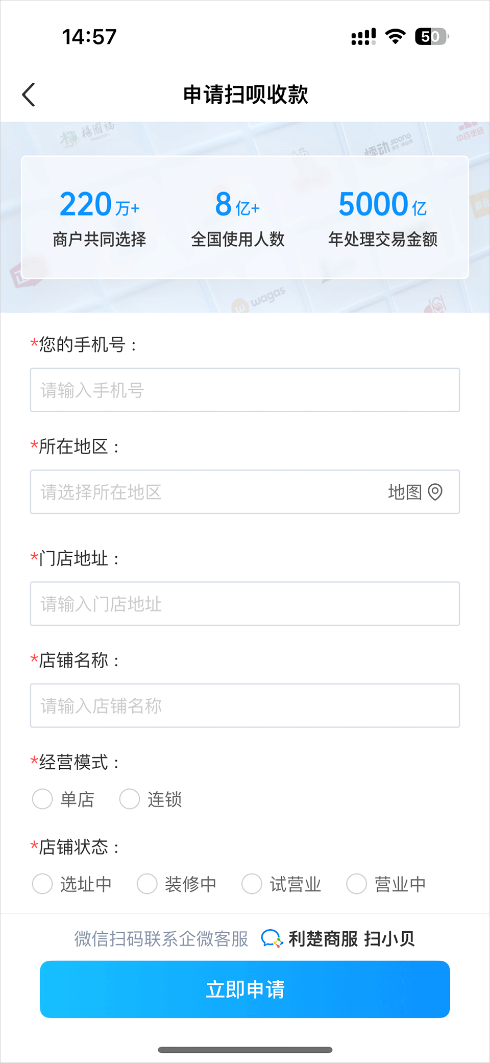 通过商户信息认证能够对商户收款信息进行获取,通过认证使用服务。