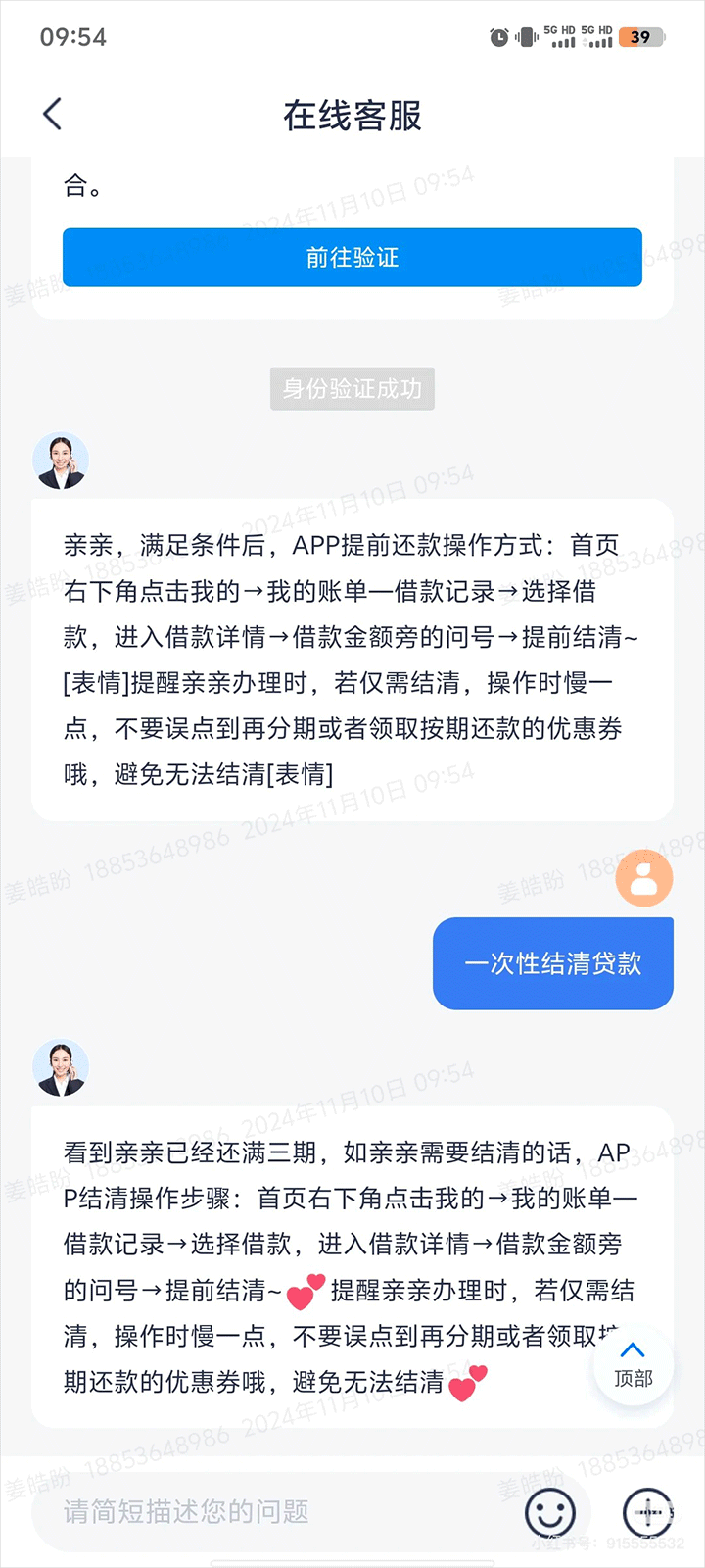 4、用户还可以直接播打人工客服直接提出提前还款的请求。