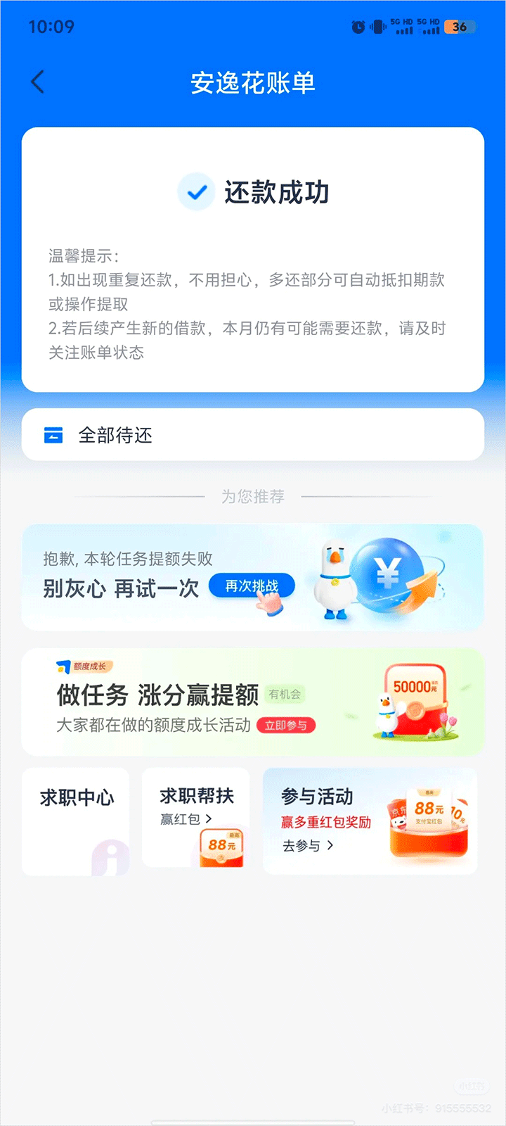 3、很多朋友有时候就想提前把它还了,担心自己到时候用掉了,这个时候就可以点击提前还款,根据提示完成操作即可。