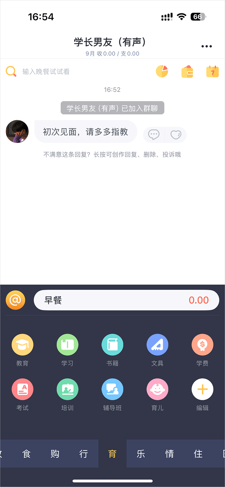 1、记账陪伴:自定义设置陪你记账的人资料,你喜欢的他就在你的身边