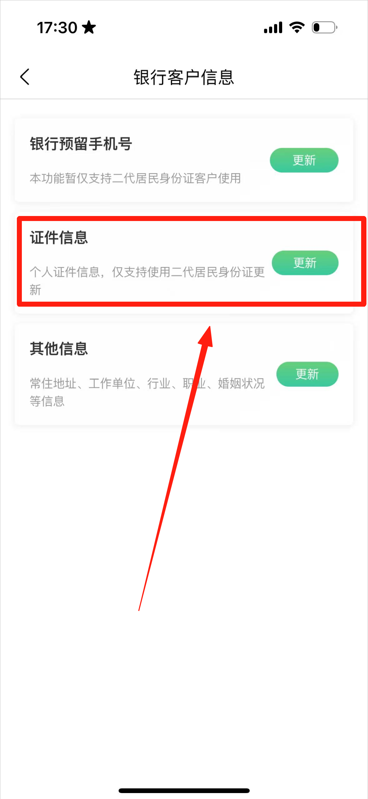 3、第二个证件信息点击“更新”上传新的身份证信息即可
