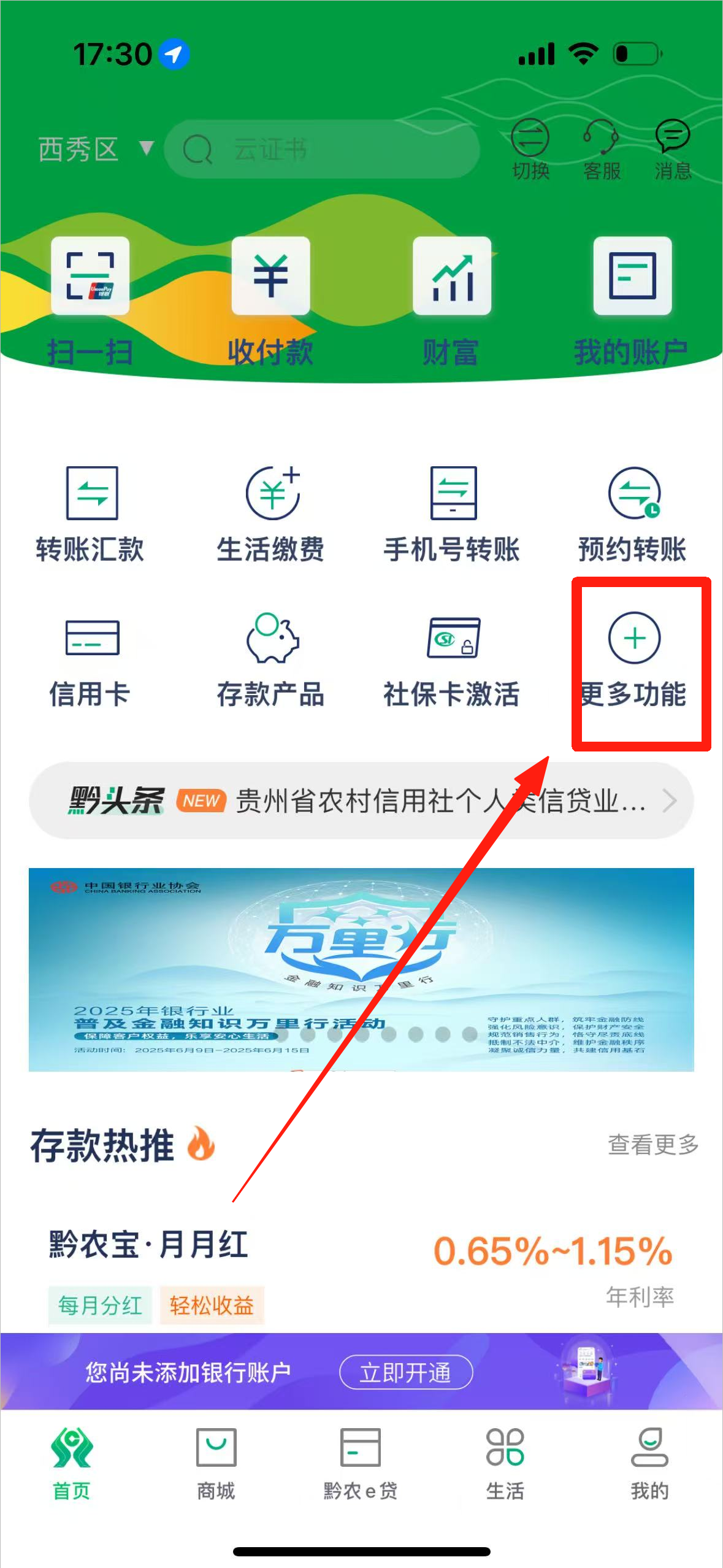 黔农e付可以实现在购物、消费中提供贷款支付。