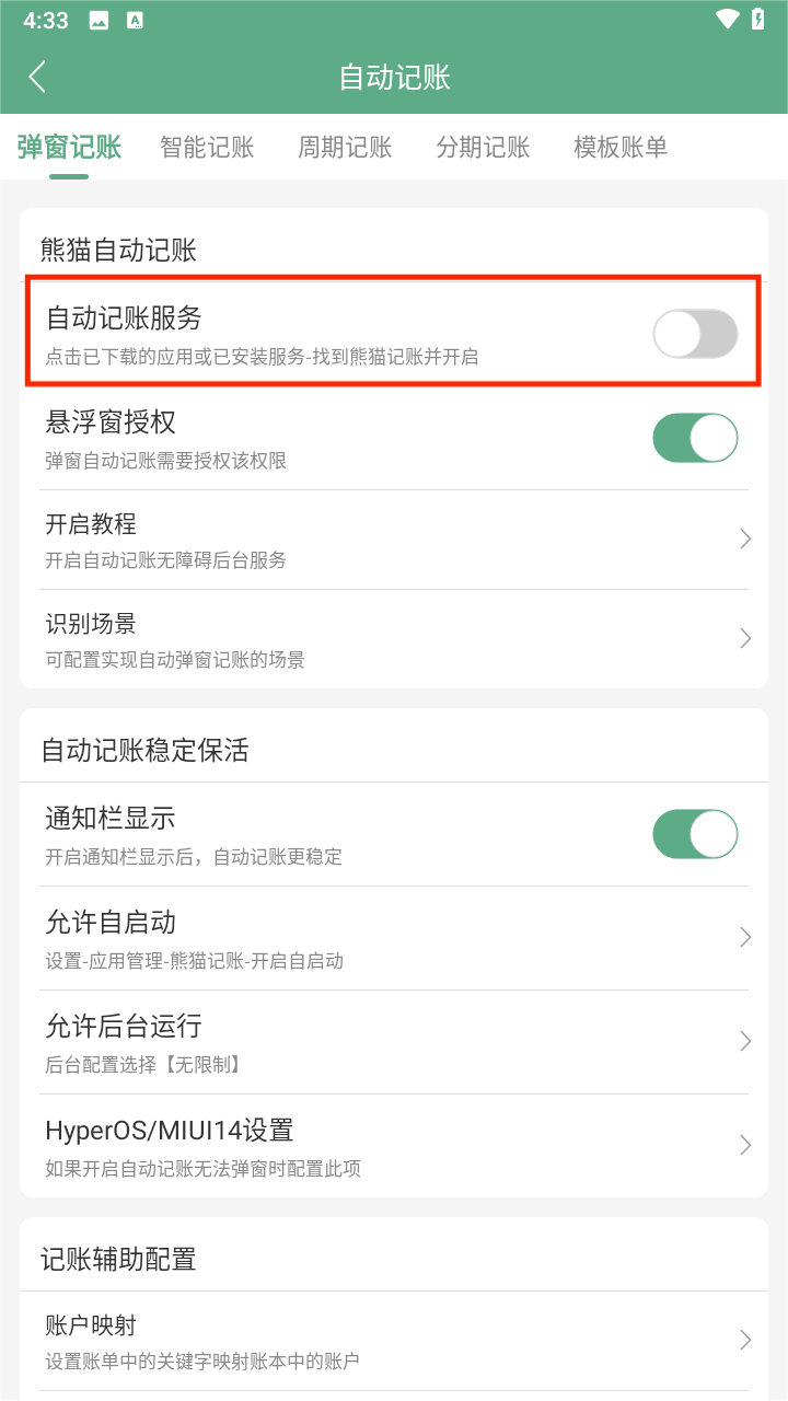 3、解决在云闪付银行卡详情页弹自动记账问题