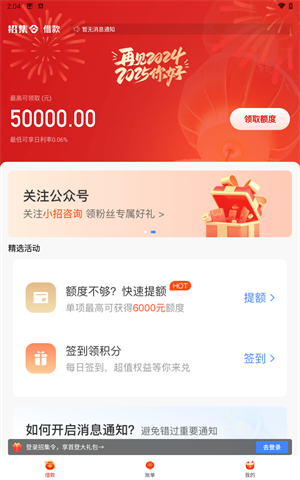 招集令app最新版是一款集多元化电商、消费金融、贷款为一体的综合性的金融理财软件。在软件中用户先是进行登陆并实名认证,然后系统会根据你的信用度给予你可贷款的金额额度,用户可以使用这个额度在平台的商店中购买各种商品,也可以直接借款去其他平台进行消费。