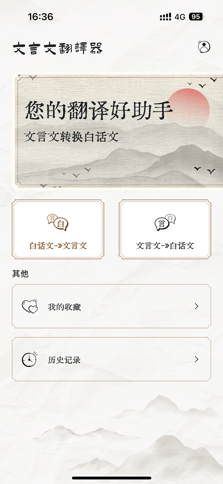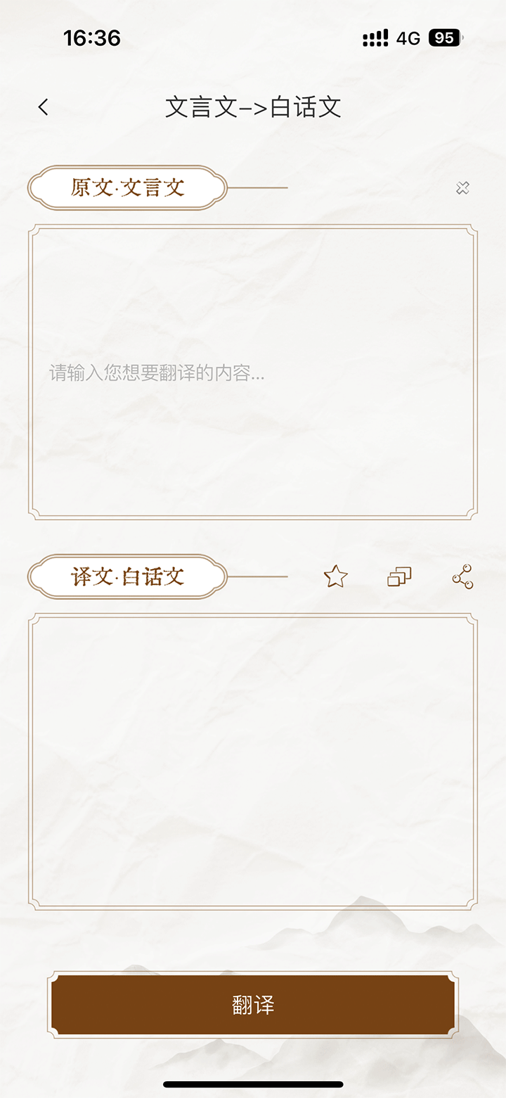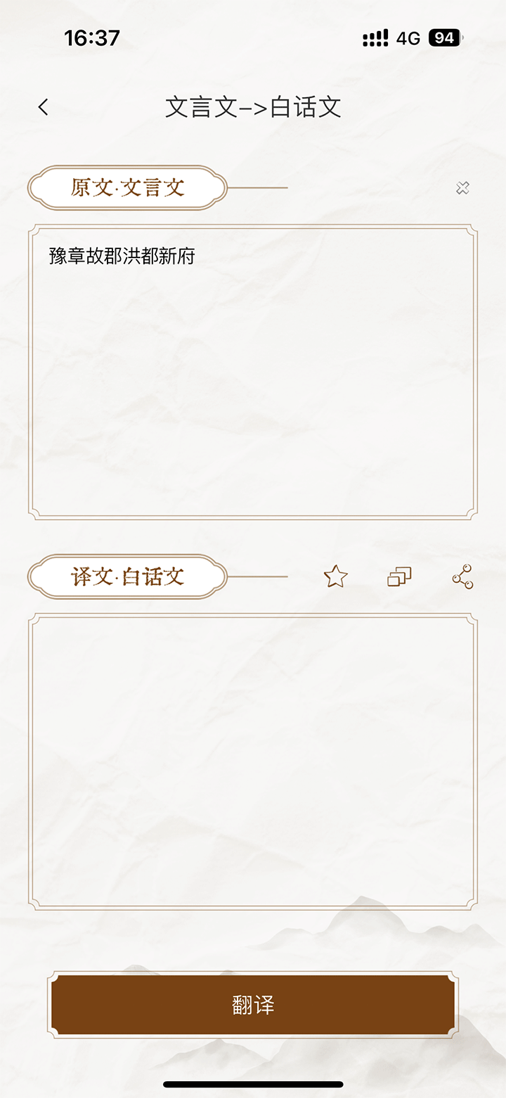 文言文翻译白话文、白话文译为文言文的操作可以在这里随时进行。
