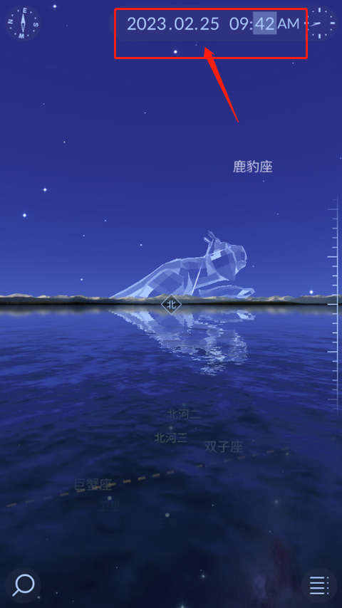 3、触摸屏幕右上角的拨号图标,您可以选择任何日期和时间并观察不同时段的天空。