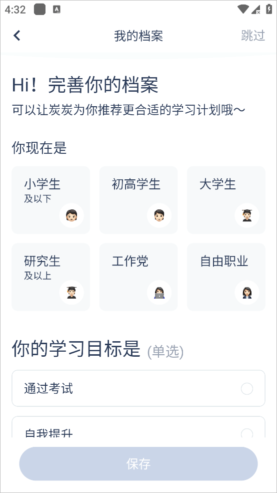 3、选择好后进入主页,会按照档案推荐合适的学习书籍