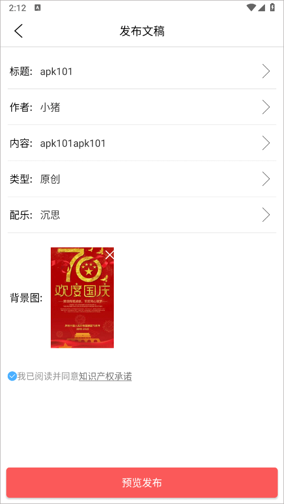 4、输入内容点击预览发布