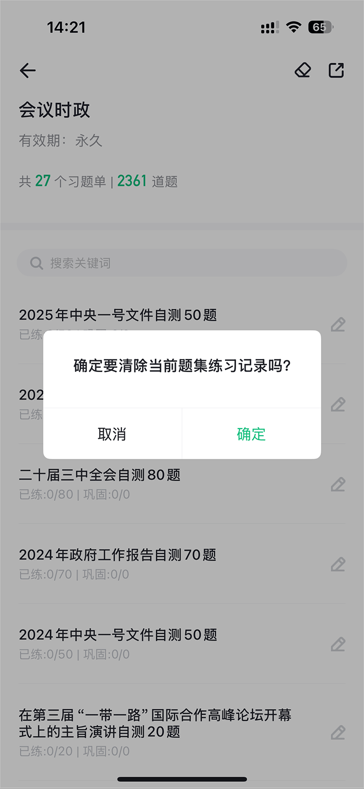 2、进入习题单点击右上角的橡皮擦图标