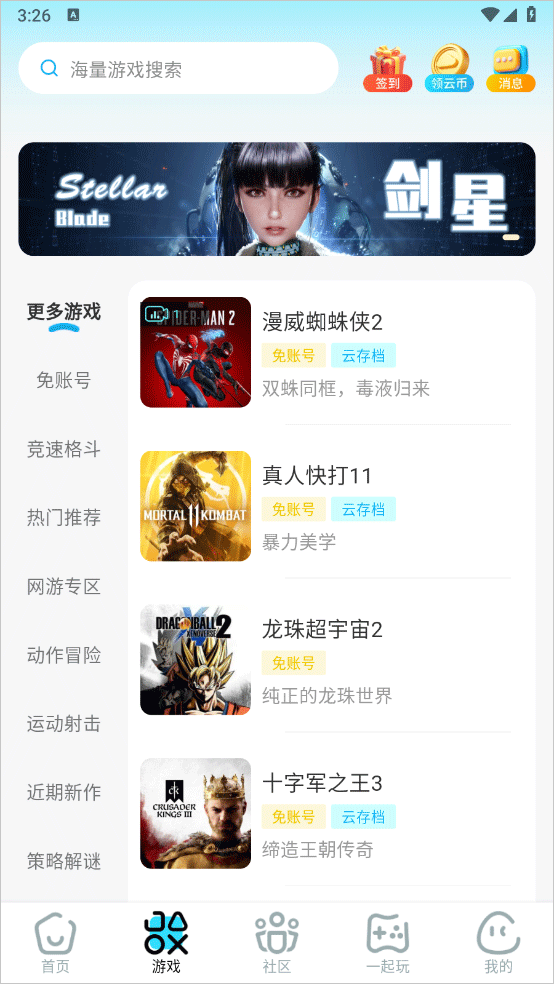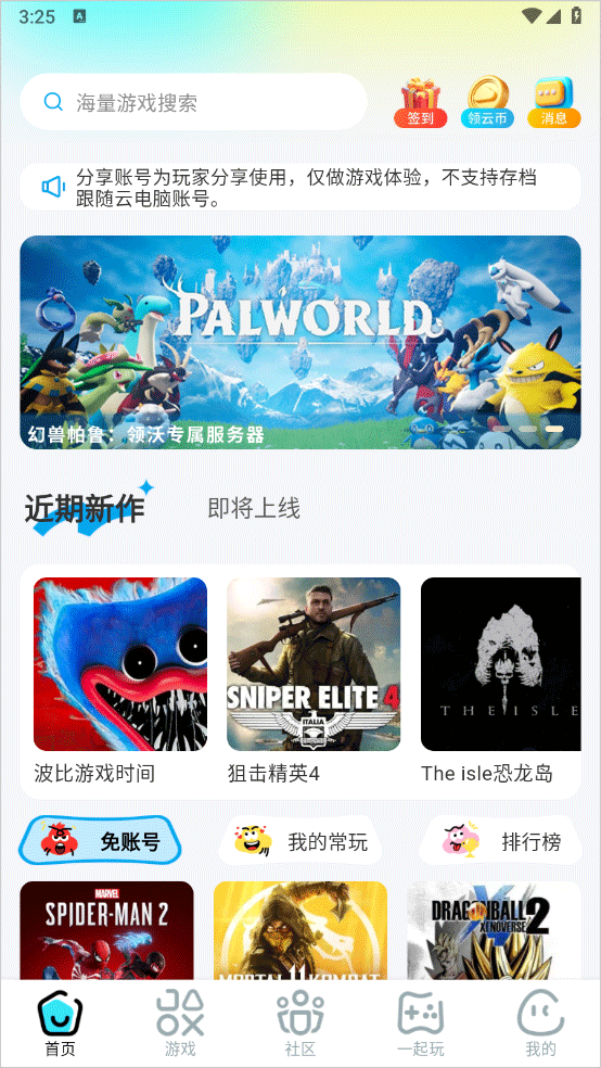 搭载“云更新”游戏菜单,3000+游戏登录即玩,无需再次下载安装。