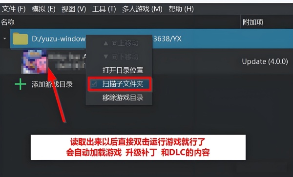 4、随后我们要选择游戏rom文件的目录,然后模拟器就会自动识别里面的游戏了。小编会在下文提供yuzu模拟器可玩的switch游戏下载链接