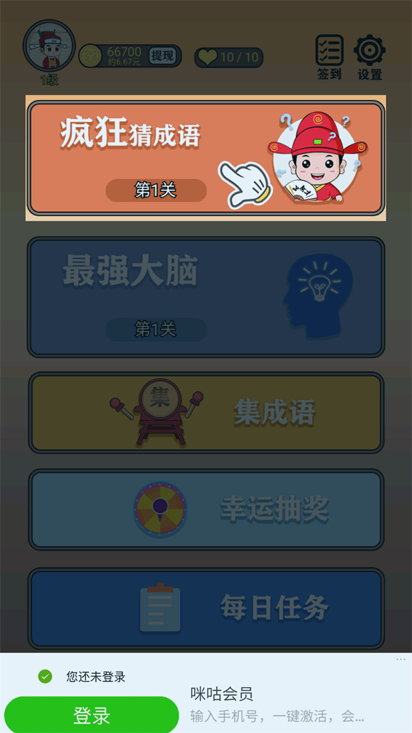 2、接下来我们可以在app里体验疯狂猜成语、最强大脑等多种不同的小游戏。