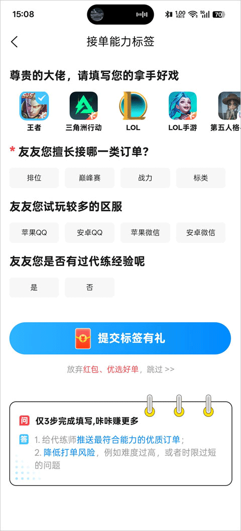 1、首先我们选择的版本要为打手板,然后来填写接单能力。