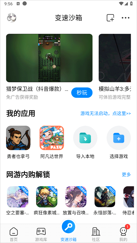 3、返回首页点击【变速沙箱】在我的应用中就能看见