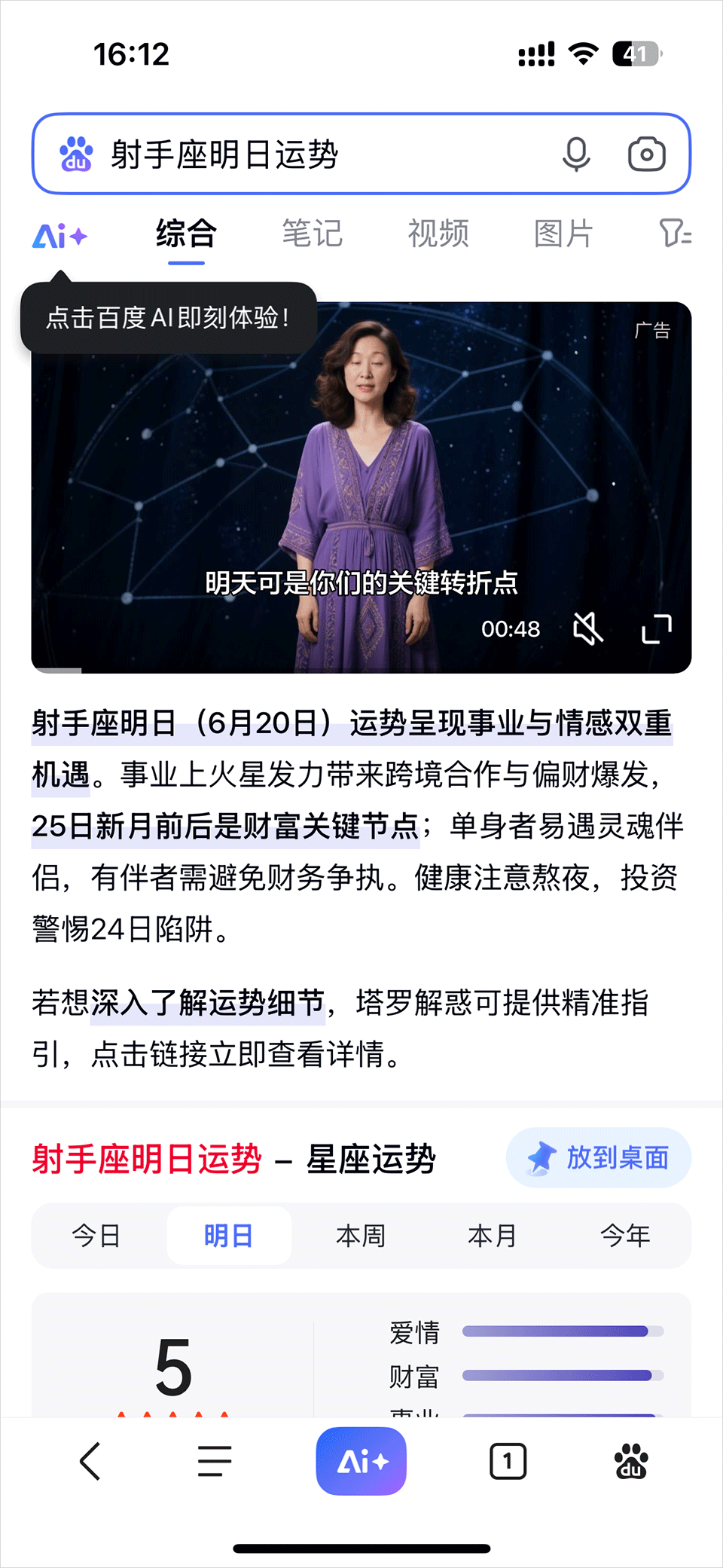 系统搭载文心一言大模型底层,可深度、精准理解你的意图, 从搜索到内容推荐,从语音交互到图像识别,百度App为你带来全方位的AI体验