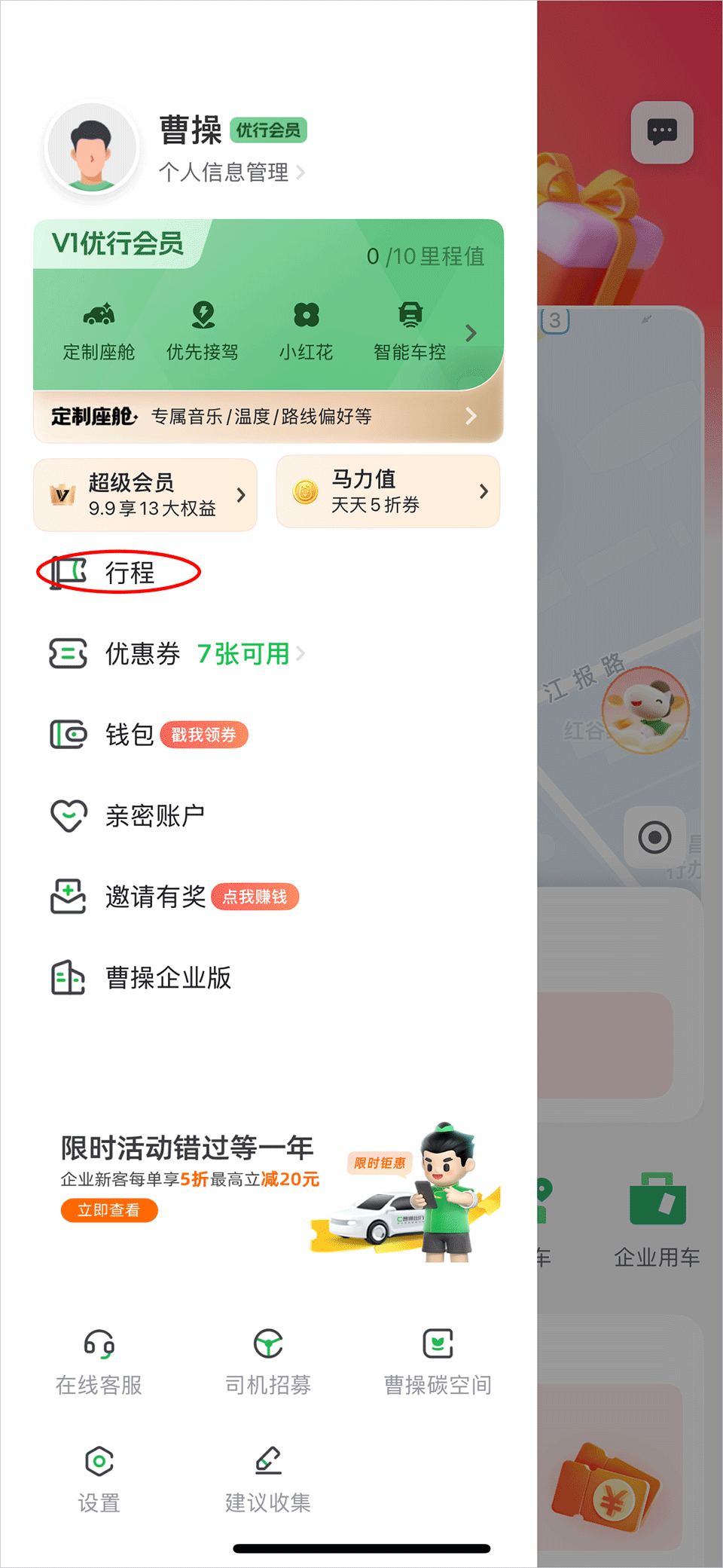 更多活动:新人有礼、限时立减、打车返券、邀请好友(好友打车你赚现金)、助力领券、曹操社群专享优惠等~